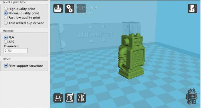 Создание предметов за 3д-принтере реализуется с помощью разных технологий, которые отличаются техникой печатания, свойствами материала и специльным подходом к выполнению такой работы. Как я уже говорила, принтер управляется специальной программой на компьютере. Картинку такой программы ты сможешь увидеть ниже.