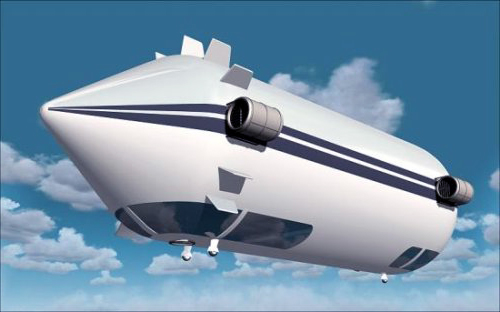 Внутрь корпуса дирижабля закачивается газ, который легче воздуха, благодаря чему аппарат получает возможность перемещаться по воздуху, как будто плавая. Для движения у дирижабля есть боковые моторы.